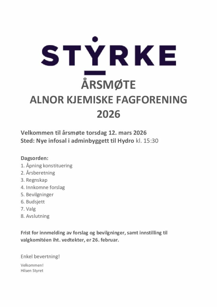 ÅRSMØTE I AKF 13. februar 2026 Per Frode Johansen Årsmøte i AKF blir avholdt torsdag 12 mars kl. 15:30 i infosalen til Hydro. Del på: Del link Del på twitter Del på facebook Sist oppdatert: 13. februar 2026